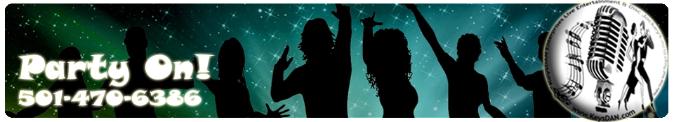| Our Karaoke DJ announces and plays the songs you select. After the VJ we take down and pack up the Karaoke system. You just sit back and have fun! That's what a Karaoke VJ is all about. If you're havin' fun, you're doin' it right! KeysDAN Enterprises, Inc. Live Entertainment and Disc Jockey Services is Your VJ choice for a Karaoke VJ DJ for KJ music & VJ engagements in Arkansas DJ, Arkansas DJs, Ar DJ, Ar DJs,VJ Planner Arkansas, Karaoke Ar, Arkansas Bands, Ar Band, Harrisburg DJ, Hot Springs DJ - Arkansas DJ, Arkansas DJs, Arkansas Wedding DJ, Harrisburg DJ, Harrisburg DJs, Harrisburg Arkansas DJ, Hot Springs DJs, Fayetteville Ar Disc Jockey, Fort Smith Ar Disc Jockeys, Central Arkansas Entertainment, Central Arkansas DJ. We can provide Live Bands for weddings, company functions, private parties, VJs and local bars. If you need a Harrisburg Arkansas band or bands we have the VJ.". All you need to do to schedule your own Karaoke DJ VJ is call us.. We do the rest. Or you may email us direct, Click on the E-mail Icon at the bottom of this page. We come to your VJ site, set up a professional Karaoke music system, provide the song catalogs and Karaoke CD's, a huge selection of CDG song titles and dance music. |